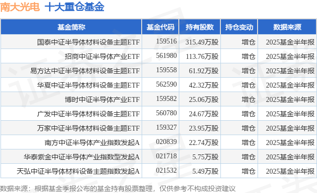 重仓南大光电的前十大公募基金请见下表: